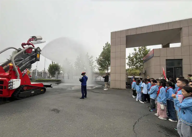“哇!这个云梯能升好高呀!”“机器人喷水也太酷了吧!”……10月9日,信阳市消防救援支队大院内热闹非凡,百余名小学生在这里开启沉浸式“小小消防员”科普研学之旅。