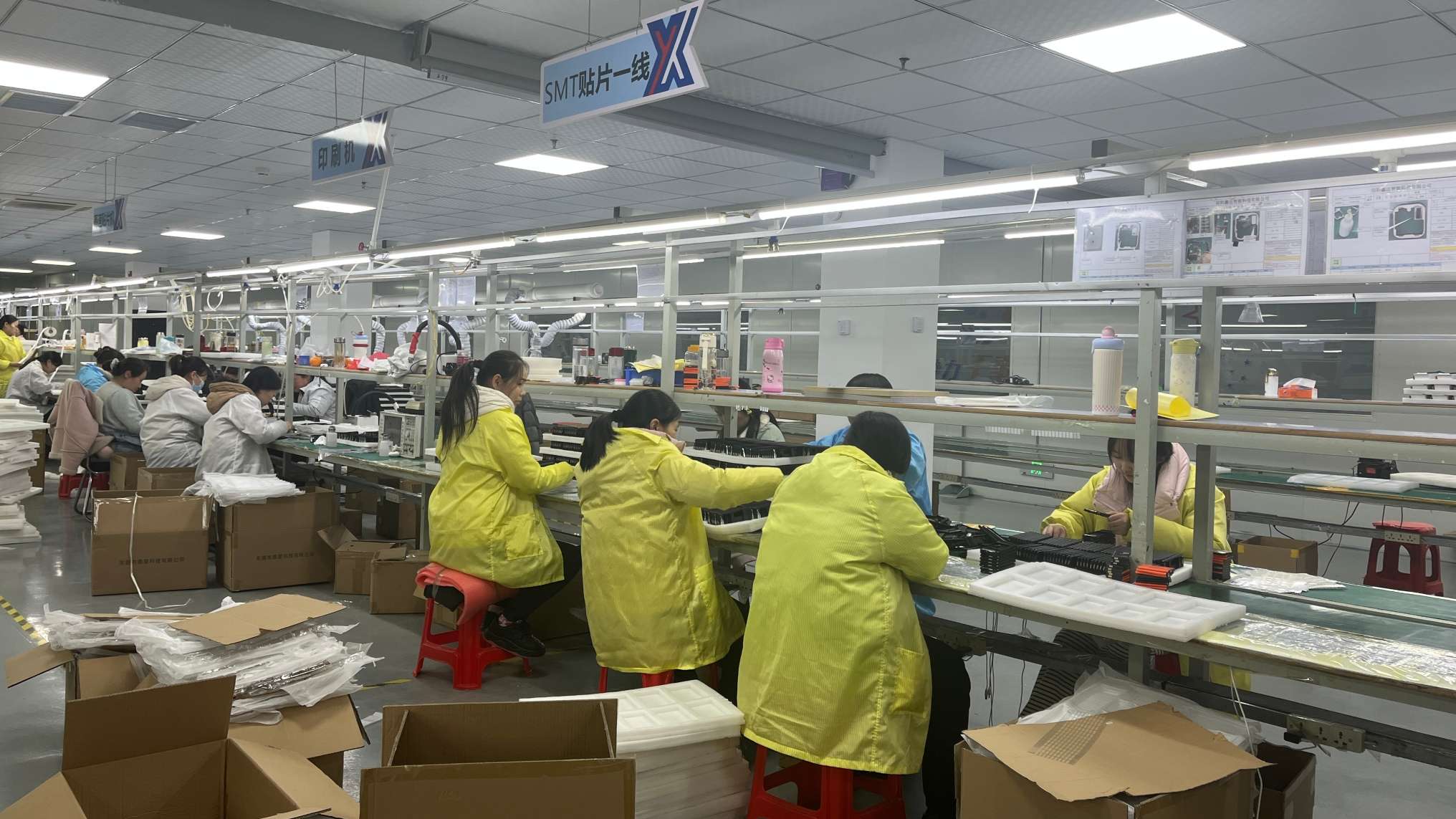 记者在生产车间看到,标准化智能穿戴生产线、SMT贴片生产线、自动化设备生产线高速运转,五轴五联动精密加工设备与机器人辅助设备紧密配合,实现了部分车间操作无人化、设备运行全自动化。