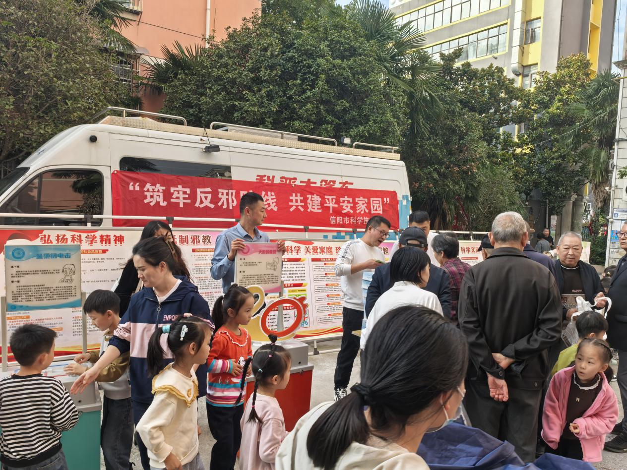在2025年全国科普月期间,为筑牢反邪防线、共建平安家园,营造浓厚的反邪、防邪社会氛围,9月24日,信阳市科协联合浉河区科协在建设路滨河轩小区开展了反邪教宣传进社区活动。
