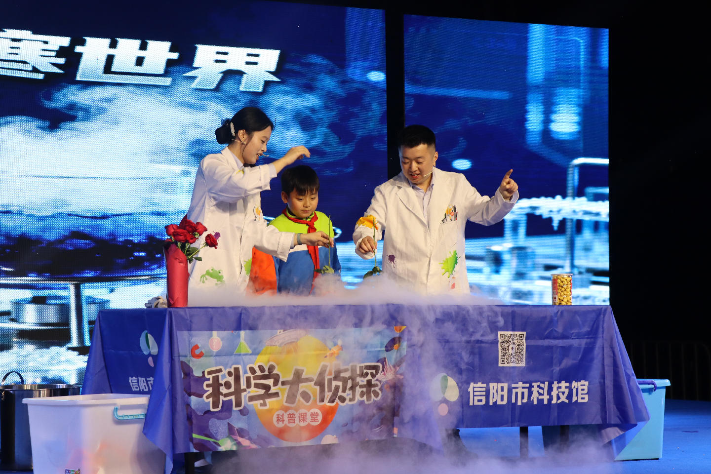 活动开始前,大屏上,信阳市全国科普月宣传片传递“科普助力生活、提升全民科学素养”的理念;市科技馆特色活动合集,回顾“科学大侦探”“创客空间”等品牌活动,展现科普阵地的坚守与努力 。