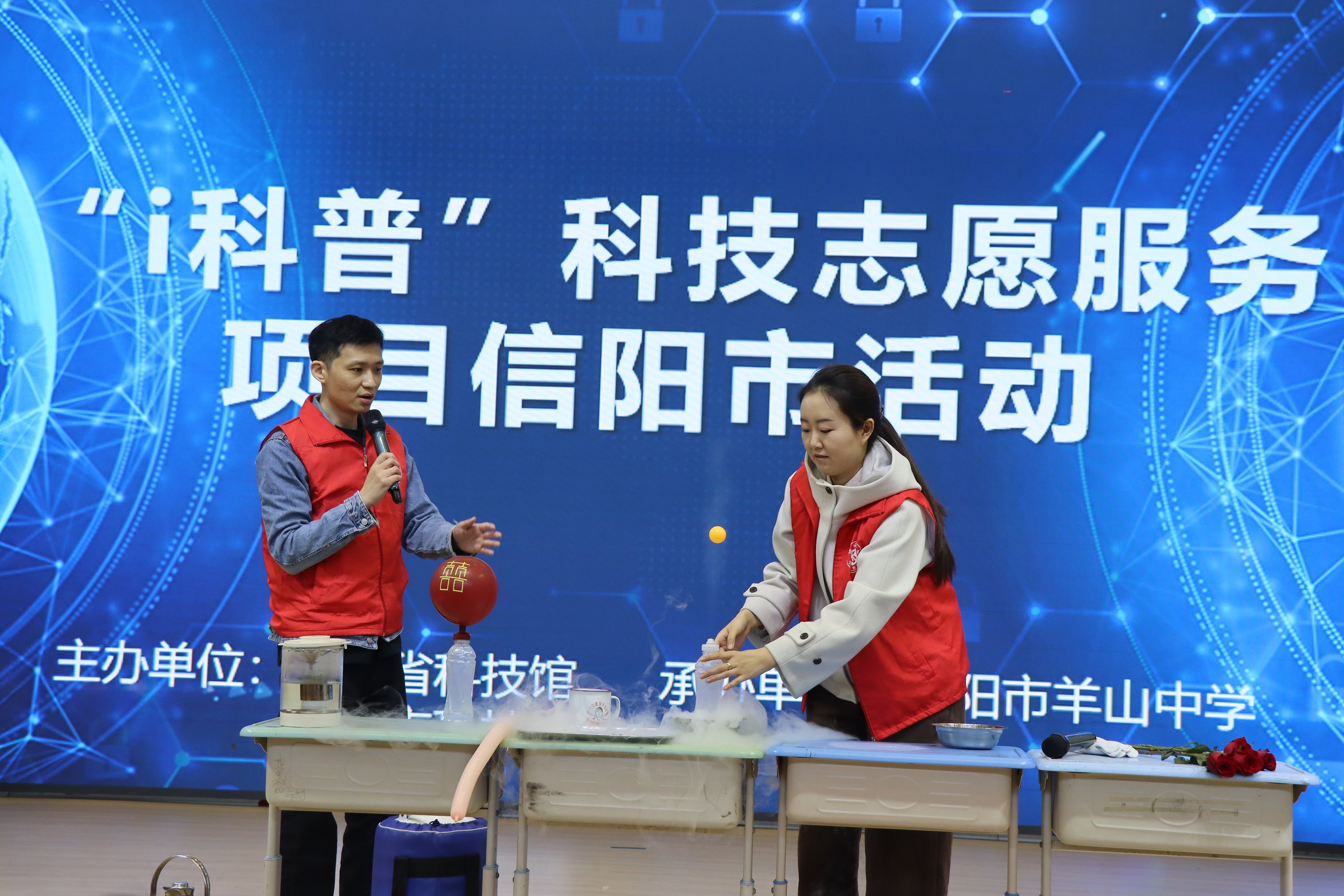 3月25日上午,河南省科技馆“竹蜻蜓i科普”科技志愿服务队与信阳市科技馆一同走进信阳市羊山中学,在学校体育馆为师生们带来了一场盛大的科普活动。
