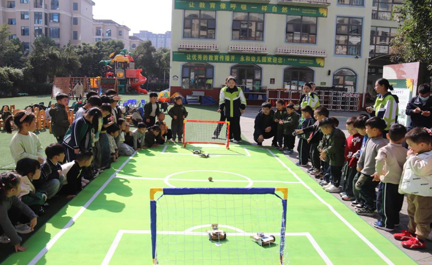 活动现场变身为一个奇妙的“科技乐园”。在科普辅导老师的引导下,孩子们踊跃参与各项互动体验。“小球拉大球”引发阵阵惊叹,马德堡半球实验让大家直观感受到大气压的强大力量,空气炮表演则生动展现出空气的流动与能量。机器人随音乐灵活起舞,智能机器狗展示行走与翻滚技能,无人机在空中自如穿梭,机甲足球展开趣味对抗赛,科普大篷车带来的流动展项也吸引孩子们纷纷动手操作,在亲身体验中理解科学原理。