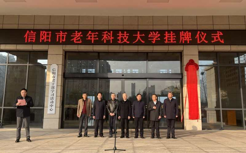 12月10日,信阳市老年科技大学在信阳市老干部活动中心举行挂牌仪式。河南省老年科技工作者协会副会长、信阳市老年科技工作者协会会长胡亚才和清华大学教授、博士生导师董景新共同为“信阳市老年科技大学”挂牌。市委组织部副部长、市老干部局局长耿传清以及市老年科技工作者协会副会长孙杰、张传明、李家明、姜其学等出席挂牌仪式。市老年科技工作者协会常务副会长、秘书长张善伟主持挂牌仪式。
