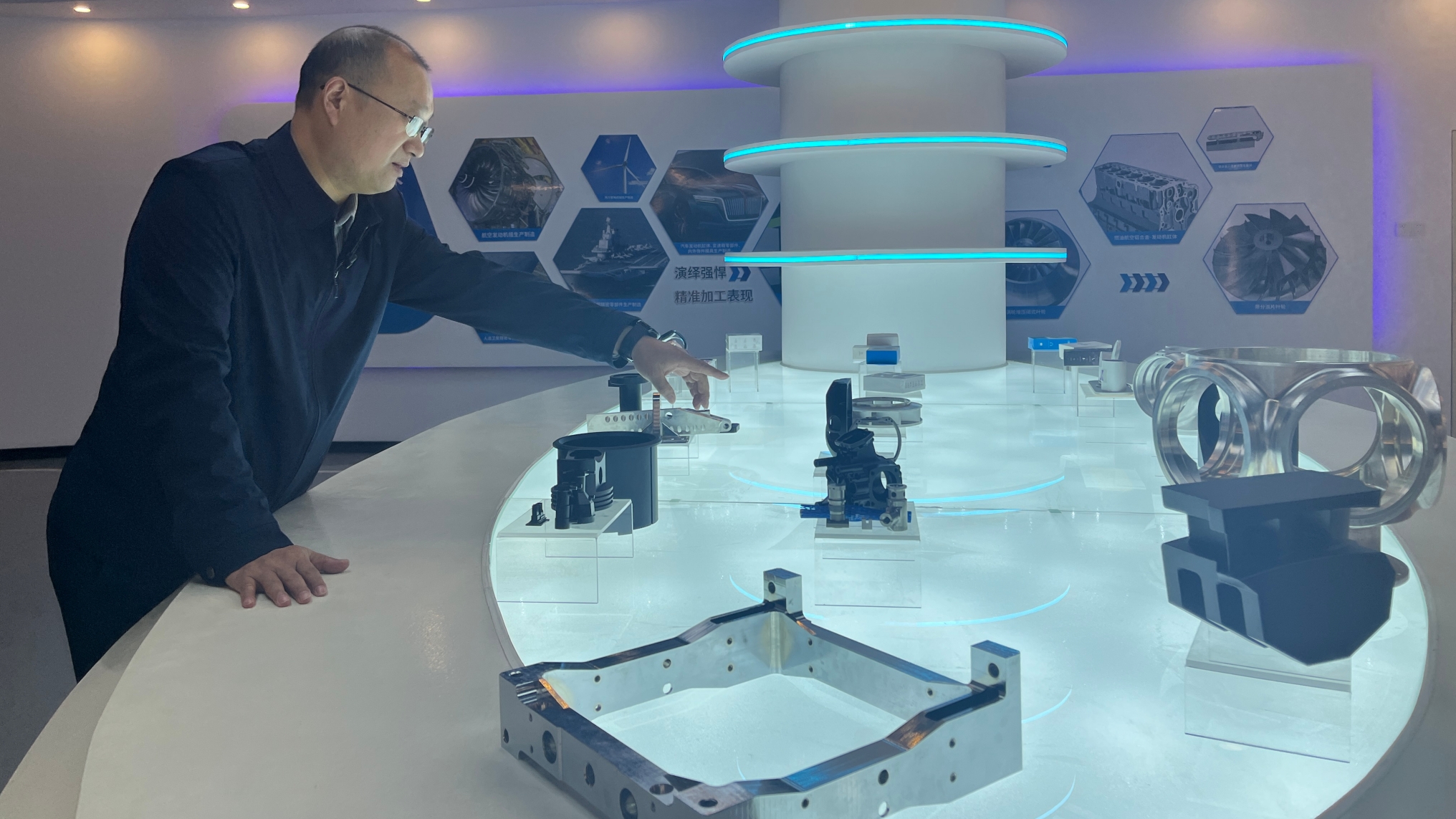 在发热展厅,公司技术部研究员郭靖正触摸一块竖立的大理石墙板向记者展示:“您摸一摸,这墙板看着是普通大理石,覆膜后就能发热,搭配红外半导体电热膜地暖,很适合家庭使用。”