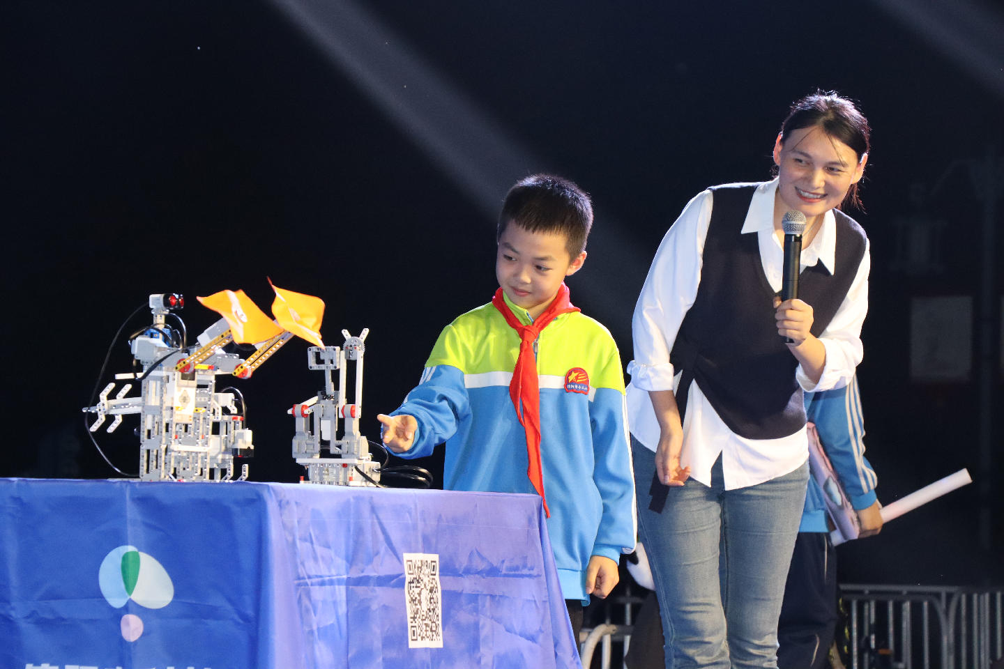 活动现场,热闹与惊喜交织。市第九小学的花样跳绳率先登场,绳影翻飞间,活力点燃全场;市第三小学的机器人随着值得一提的是,市青少年机器人协会的创想秀、固始县机器狗表演轮番上阵,市第十三小学的童创机甲秀酷炫登场,还有魔术表演带来的奇幻时刻,两个小时的精彩节目让观众沉浸其中,在惊呼与掌声里感受科技魅力 。