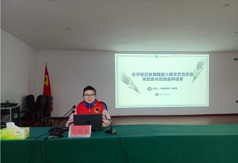 1月8日下午,信阳市农业科学院“业务课堂”科普讲座活动在院学术报告厅成功举办。本次活动特邀河南省科协“i科普”—《稻茬小麦绿色高效栽培技术培训助力粮食安全》项目专家团队成员刘晓宇同志,作题为《分子标记检测赋能小麦农艺性状遗传改良与优良品种选育》的专题报告。全院130余名科技工作者齐聚一堂,共同学习前沿育种技术,探讨科技赋能现代农业发展路径。