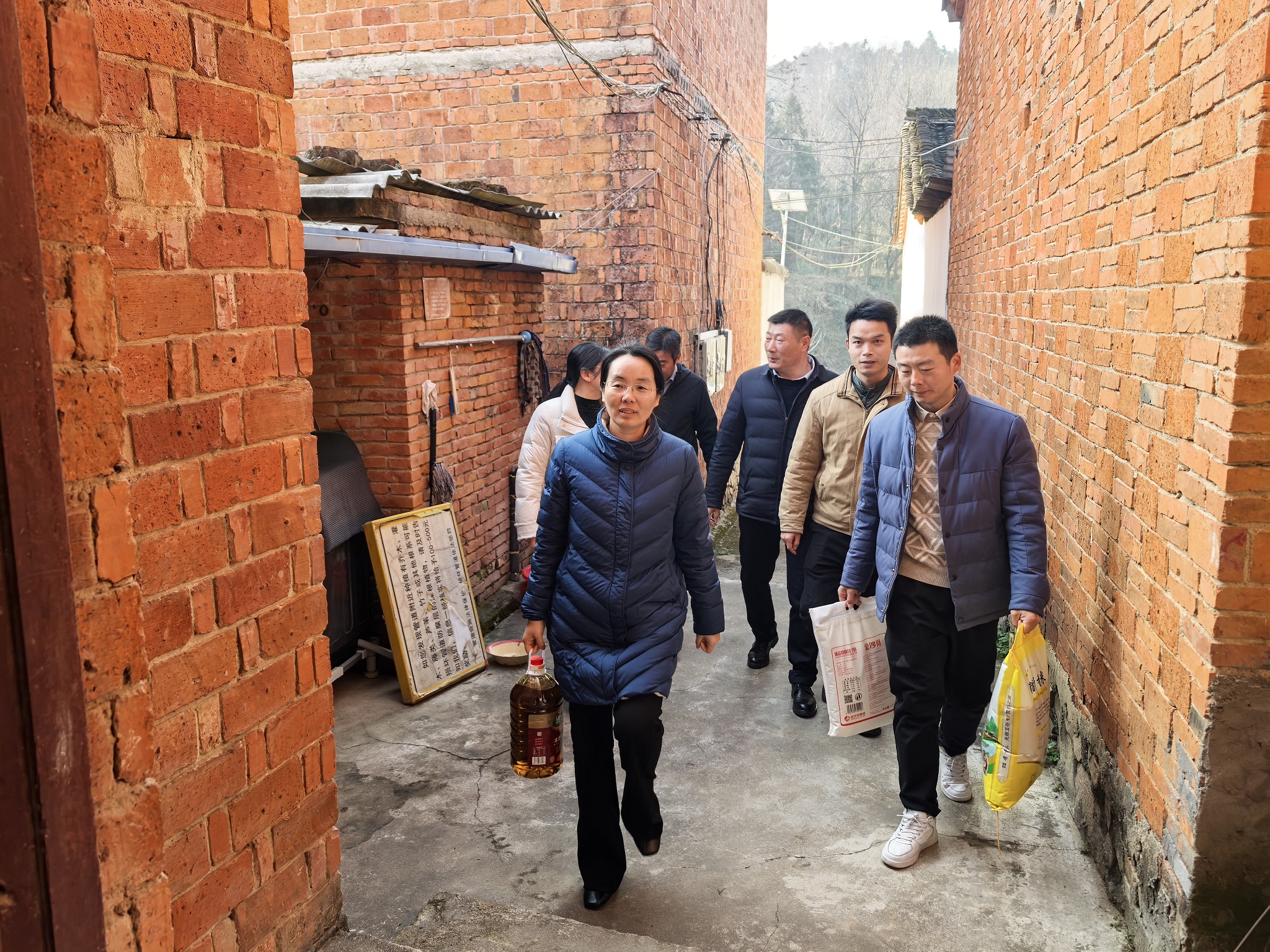 随后,慰问组深入困难群众家中,为困难群众代表送去米、面、油等慰问物资,与群众亲切交谈、促膝谈心,悉心询问他们的身体状况、家庭生活情况及实际诉求,叮嘱大家注意保重身体、做好冬季保暖,鼓励他们保持乐观向上的生活态度,树立信心、勤劳奋进,努力把日子越过越红火。