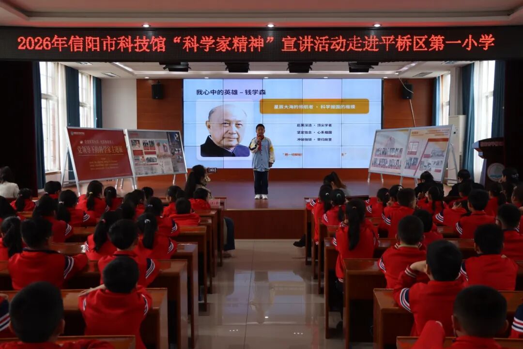 4月23日,信阳市科技馆走进平桥区第一小学,开展科学家精神主题宣讲活动。